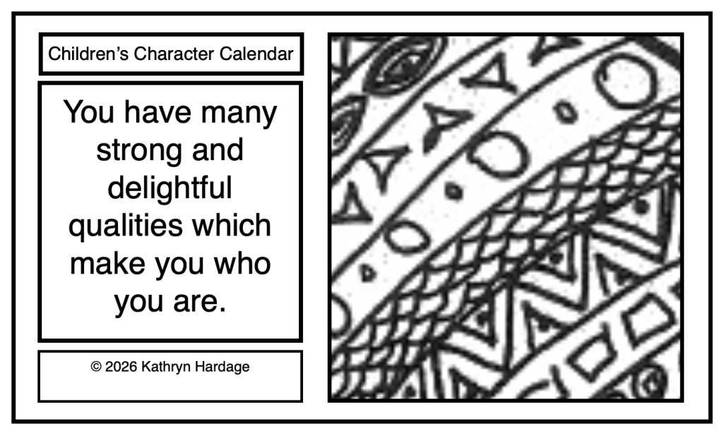 Children’s Character Calendar 1.1 – You have many strong and delightful qualities which make you who you are.