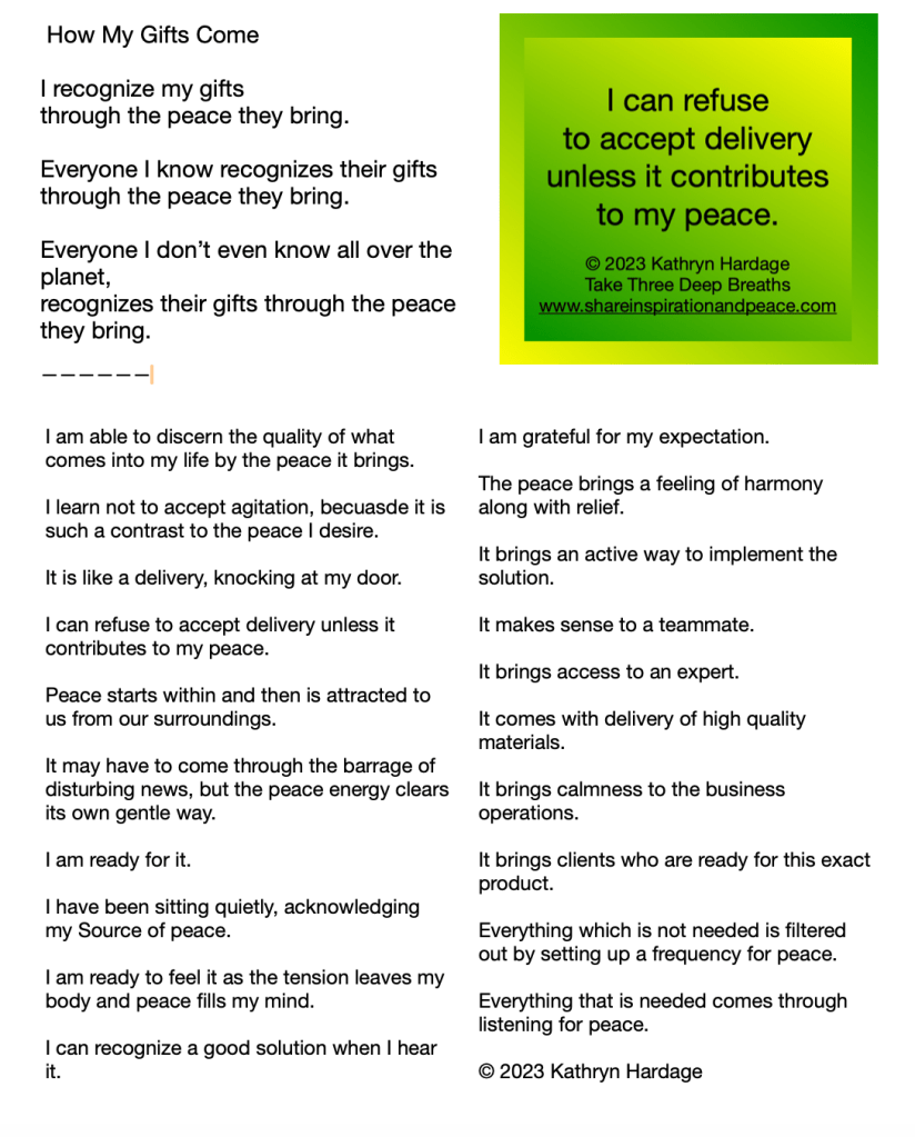 My gifts come to me through inner listening.