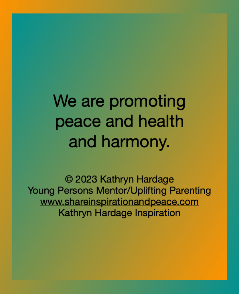 We are promoting peace and health and harmony.